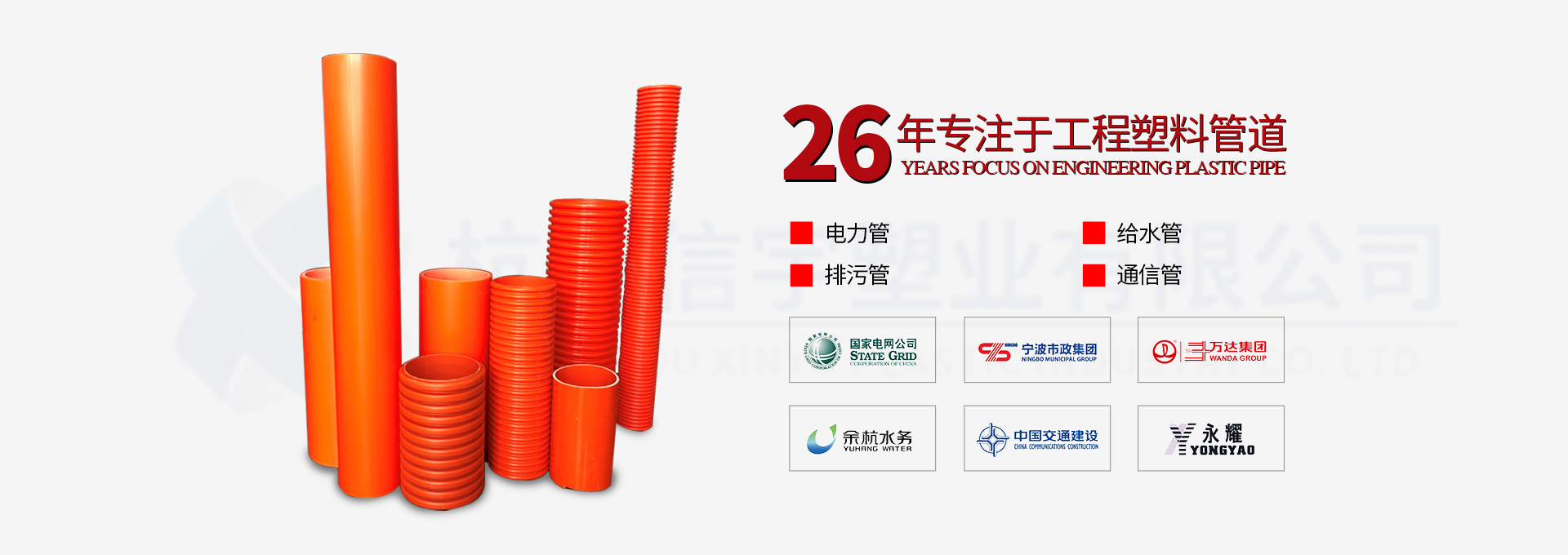 杭州信宇塑業(yè)有限公司創(chuàng)立于1993年,注冊(cè)資金10080萬(wàn)元,是一家集塑料管道研發(fā)、制造、銷售為一體的國(guó)家高新技術(shù)企業(yè)。公司總部坐落于美麗的杭州西子湖畔,目前在杭州市黃湖工業(yè)園、安徽郎溪新發(fā)工業(yè)園建有兩大管道生產(chǎn)基地,總占地面積11萬(wàn)平方米。此外,公司還擁有一家獨(dú)資子公司—安徽信宇管業(yè)科技有限公司。公司現(xiàn)有全自動(dòng)塑料擠出機(jī)生產(chǎn)線52條,高精度模具500余套,年生產(chǎn)能力達(dá)10萬(wàn)噸。公司專業(yè)生產(chǎn)“信宇中塑”牌HDPE給排水管、HDPE中空壁纏繞管、…